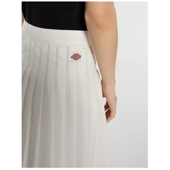 The Dellrose skirt is a stylish and classically designed long length skirt for laidback days and casual weekends. Featuring a shaped waistband, a clean hem, stitched-down vertical pleats, and our iconic woven Dickies label at the back, it’s a must-have style for many different occasions.