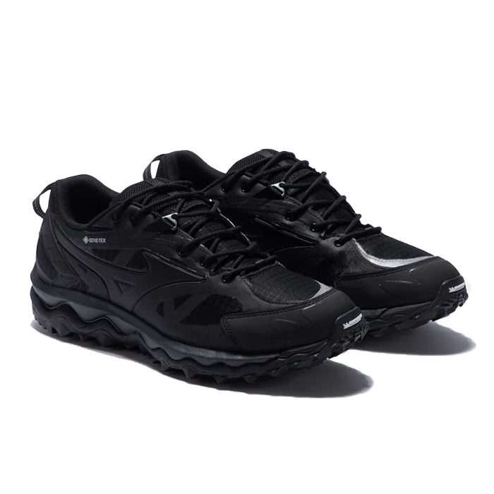 The Wave Mujin TL GTX keeps the same concept as the previous Wave Mujin TL, but shifting the leather execution with a technical thermo-transfer layering. This style represents an exciting combination of a running inspired upper and a high-technology performance sole from Mizuno top trail running range. It also brings a new exciting material collaboration with GoreTex, worldly recognized for its waterproof membranes. The upper is based on unreleased sketches of famed illustrator and designer Tuan Lee, rendered in monochrome and is paired with a trail sole in black. This Wave Mujin TL GTX has a distinct outdoor feel, while staying sleek and sophisticated. Combined with function-based pieces of apparel, it can become the perfect shoe to please the ones that want to bring outdoors and fashion together, keeping the explorer mindset.