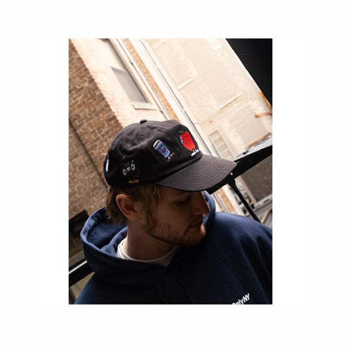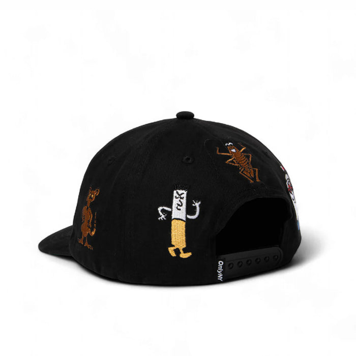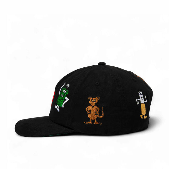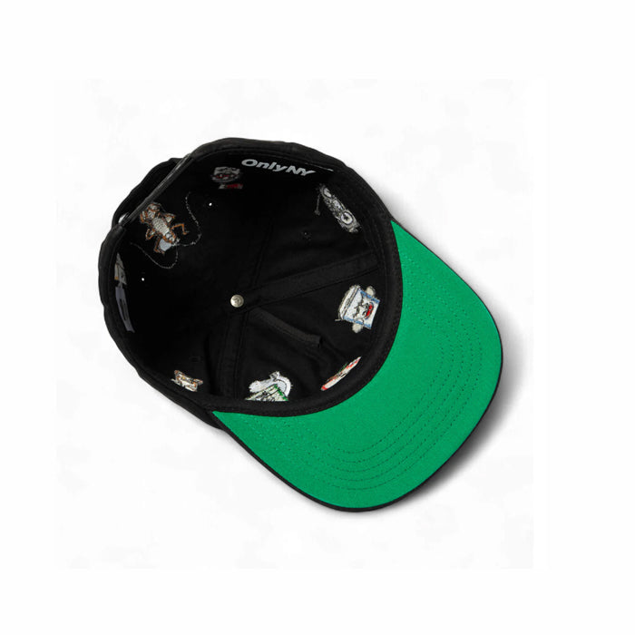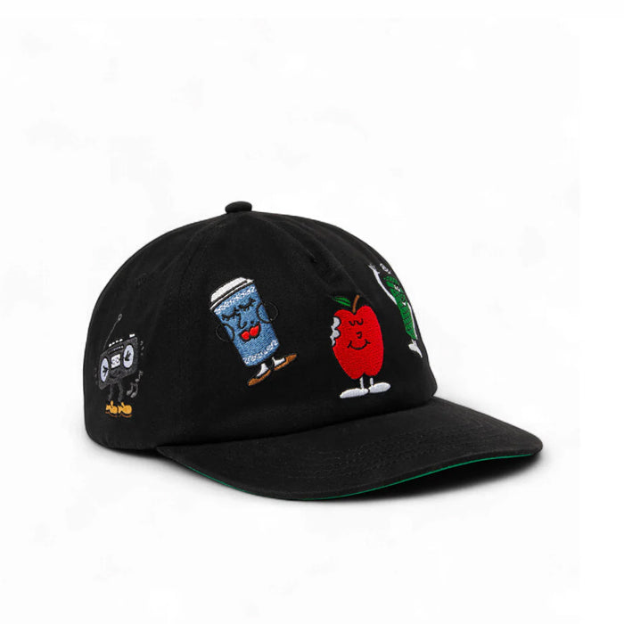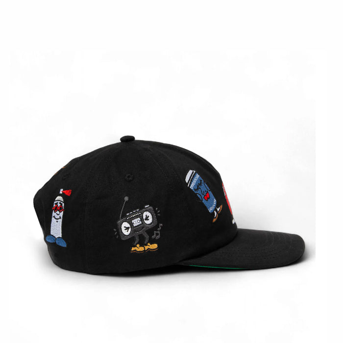 Embroidered graphics around crown.