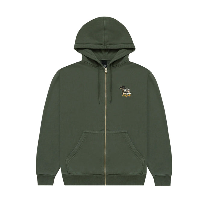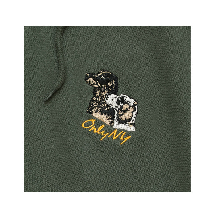 Embroidered chest graphic.