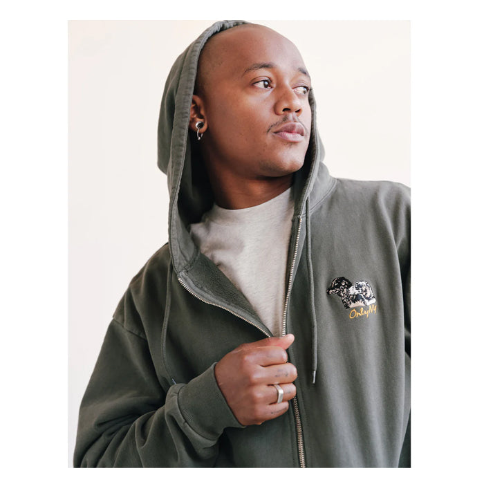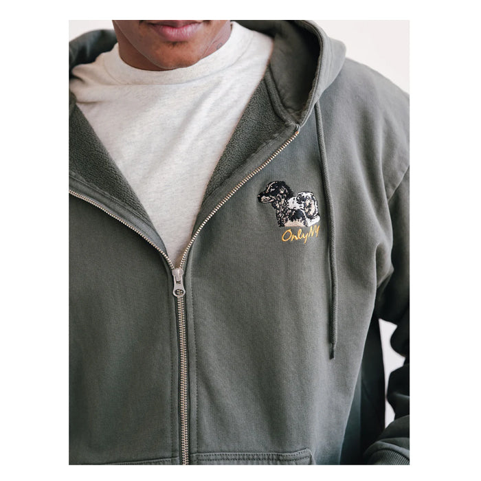 9.5 oz, midweight brushed back fleece.
