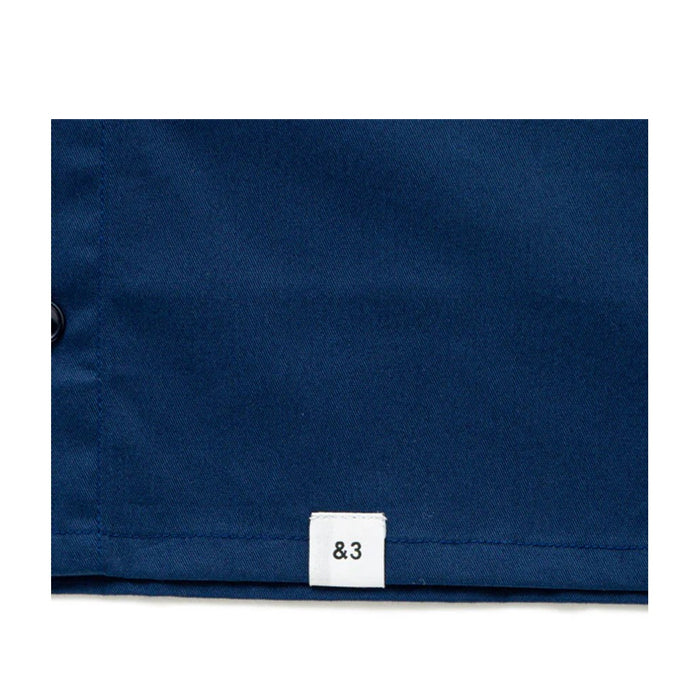 This is an updated version of the mechanic's shirt worn by mechanics. The body width is slightly larger, and the length is slightly longer. Pockets are located on both sides of the chest, with the brand logo embroidered with chain stitching above the left chest pocket. Made from a polyester/cotton fabric with a moderate firmness.