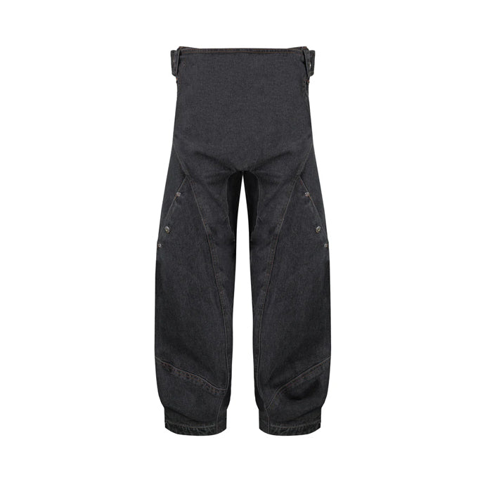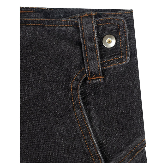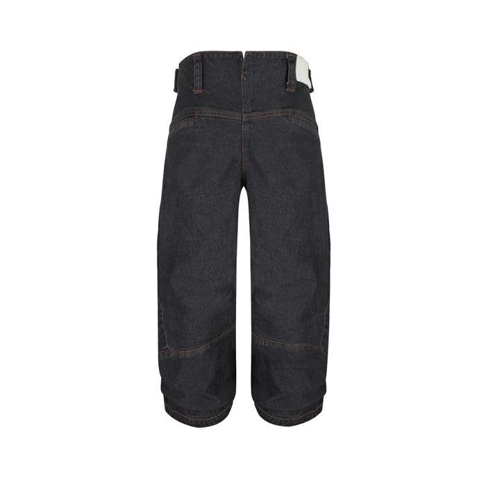 The Welding Denim Pants were designed with a barrel-cut fit and feature a unique front flap with a snap-button enclosure that covers the front zipper. The pants are equipped with two front pockets, two thigh pockets, and two rear pockets. The pair also features the signature WHITE NOISE FM faux-leather patch at the back.Â
